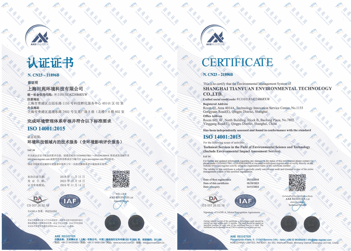 《ISO14001環(huán)境管理體系認(rèn)證證書》
